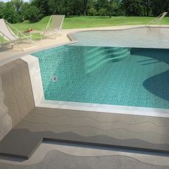 Feszített víztükrű medencét szeretne? Utólagosan elhelyezhető előregyártott beton folyókaelemekkel egyszerű, gyors és sokkal olcsóbb mintha a medence szerkezet építő zsaluzná ki a vízelvezető vályút...